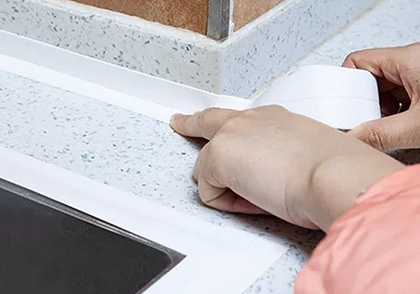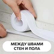 Мы предлагаем водонепроницаемую, устойчивую к плесени ленту, которую можно наклеить на шов между газовой плитой и столом, раковиной и столом, на плинтуса и окна. Лента самоклеящаяся, вам не нужно ничего, что поможет ее приклеить!